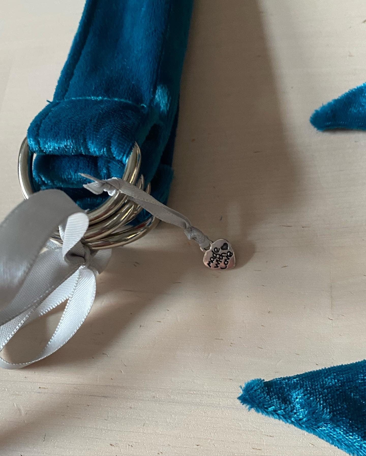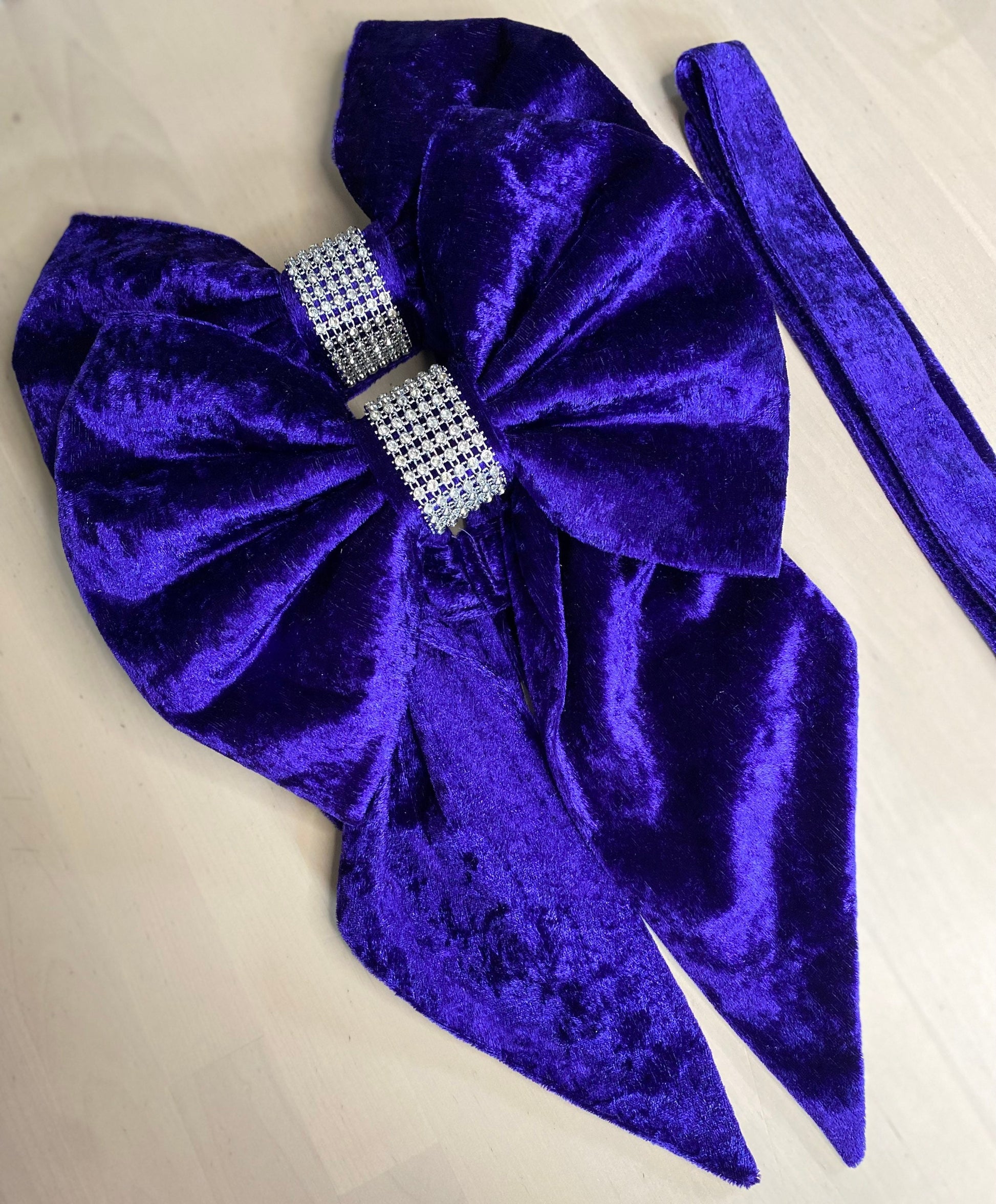 Made from either a lovely teal, silver or purple crushed velvet with a real diamantee ribbon centre.